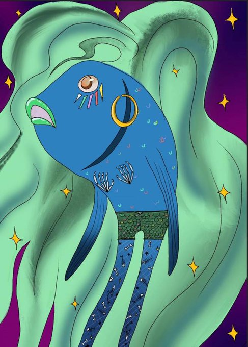 This next piece is by the awesome Dorkasorus! I love reverse mermaids and she did such a fantastic job with this version of my Bone Collector mermaid! Love the colors and those legs! Thank you so much! ♥️