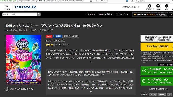 みんな、 #映画マイリトルポニー はDVDで当然SD画質だったけど、ツタヤの動画配信ならブルーレイ相当のHD画質で見られるんだ!知ってたかい?