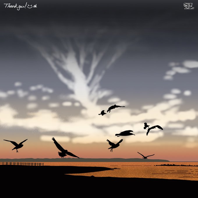 #夕日 #鳥 #カモメ #夕焼け #夕焼け空 #綺麗な景色 #綺麗な景色 #イラスト #オリジナルイラスト🎨 #自然