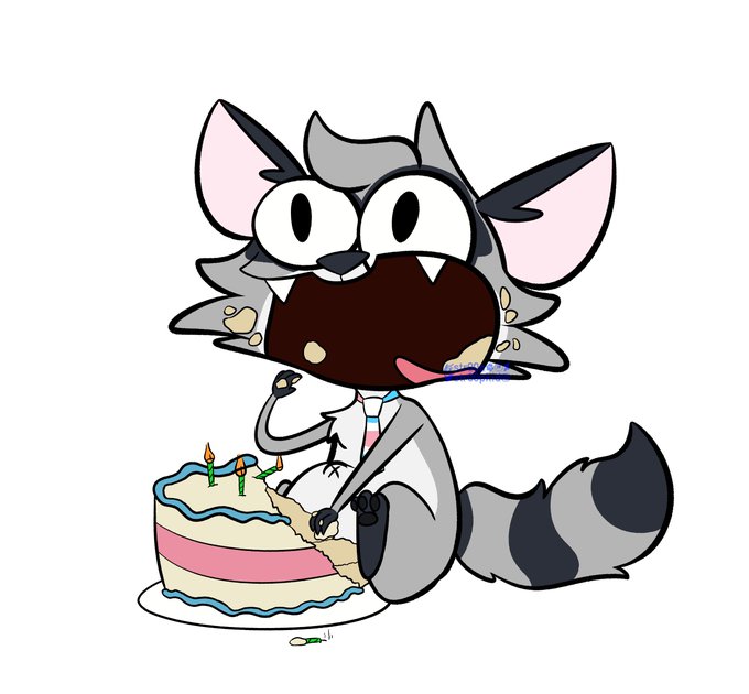 Tried to make a silly thing for @ZackyRaccoon's birthday. Took a while, for reasons. I wanna draw goofy faces more. Also I just love this little guy.