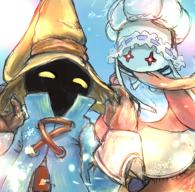 FFCCで友達と組んでたリルティとセルキーのキャラバンが大好きでした またミルラの雫集めに行きたい… やっぱり線画をアナログで済ますと楽だなぁ #FF版深夜のお絵描き60分一本勝負