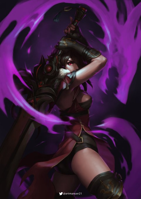 The counter bae, beast slayer, lord of the ocean, badass waifu. Painting with just 3 layers as experiment, the character, background, and purple thing, was a good practice.