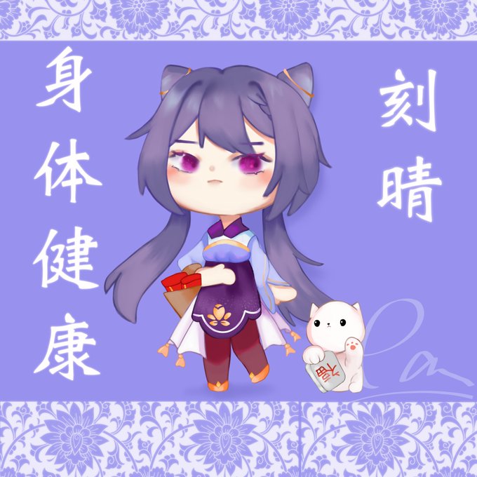 CnY Keqing with her little money cat <3 Chinese New Year is coming soon so I'm excited to see these fanarts turned into holographic cards >w<