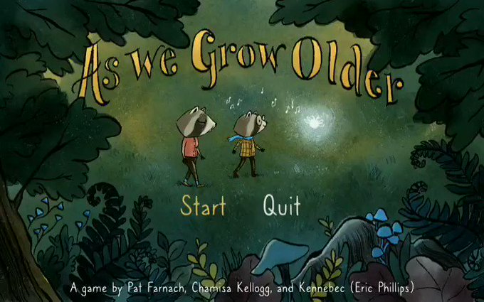 Our game "As We Grow Older" is online and free to play! A sweet story about music, declining memory, and raccoons 🦝 GORGEOUS music by @_Kennebec, art by me, and game design and programming by @PFarnach. Give it a play!