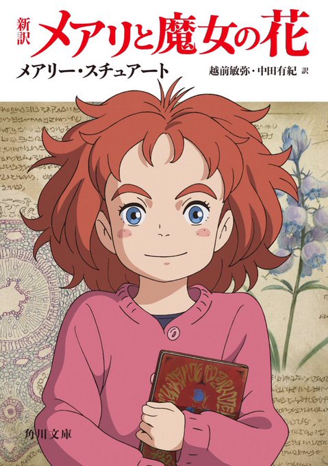 映画の原作📕「#メアリと魔女の花」が #角川文庫 より6月17日に発売!新訳となって、メアリのカバービジュアルでお目見えです。メアリの後ろにあしらっているのは、持っている本📕“呪文の神髄”の魔法文字です📝