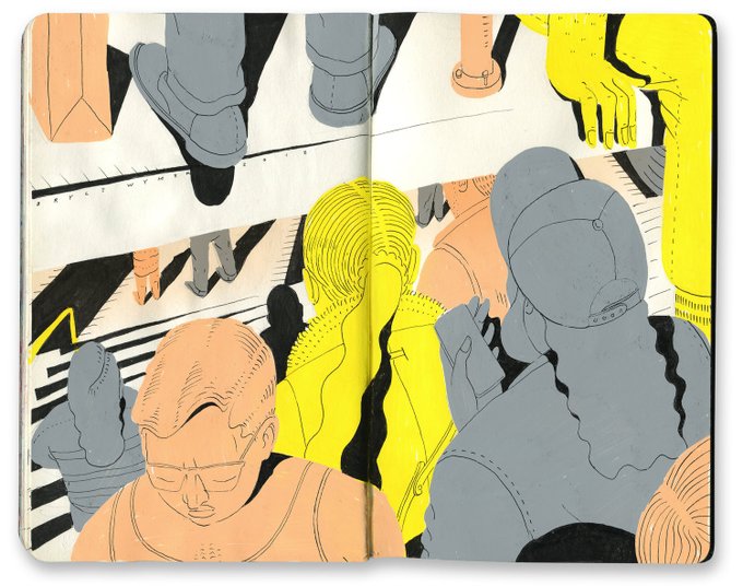 休憩中に見たブルックリン在住のBryce Wymerさんのスケッチブックが素敵すぎて仕事止めてスケッチに行きたくなってる。