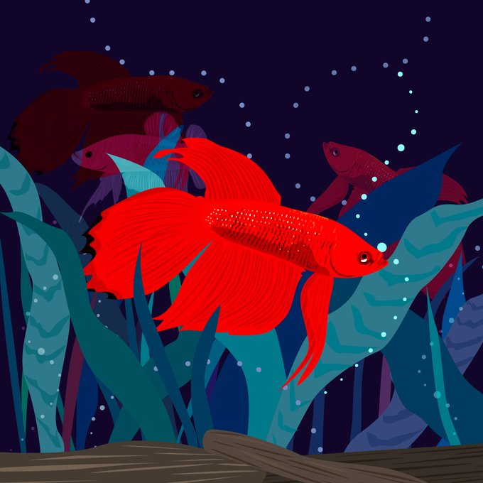 Whale, Arowana (Osteoglossum), Sunfish, Betta