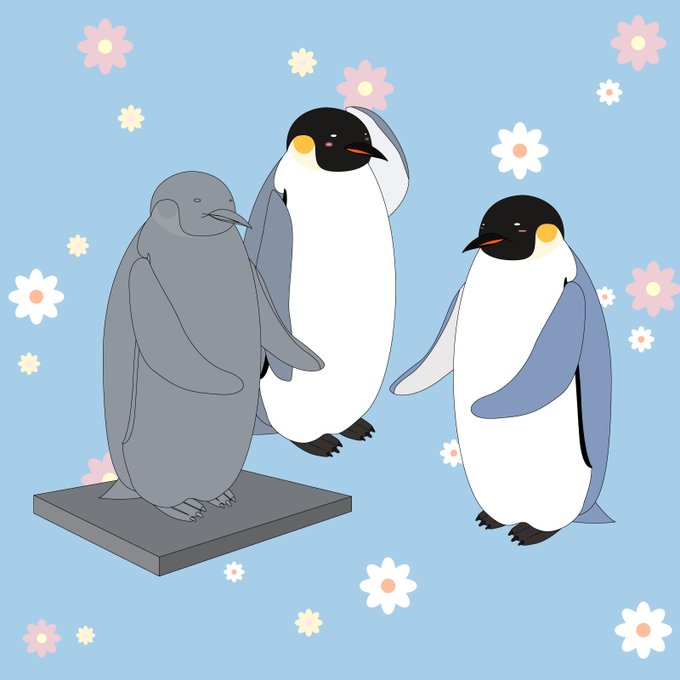 Penguin send a gift of penguin's friend. It is a stone statue. A friend is rejoicing a lot.