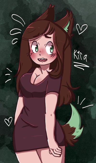 Kira in a bodycon dress with a shorter tail, her tail is normally way longer than that but i work with what my goblin brain provides that day