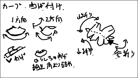 展開図がほぼ形になったところで動画用にどういった絵(写真)が要るのかを書きながら考え中、、、 「どの工程で何枚撮影する必要があるのか」「どの角度で撮れば絵が繋がるのか」といったことをあらかじめ決めてから組み立てるのがいつもの手順。