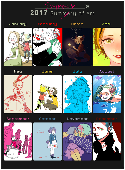 Summary of Art for 2017 テンプレお借りしてまとめてみたよ 全然描いてなかったので…お気に入りをピックアップした いつもいいねやRT、ありがとうございます! 許されている気持ちになる…