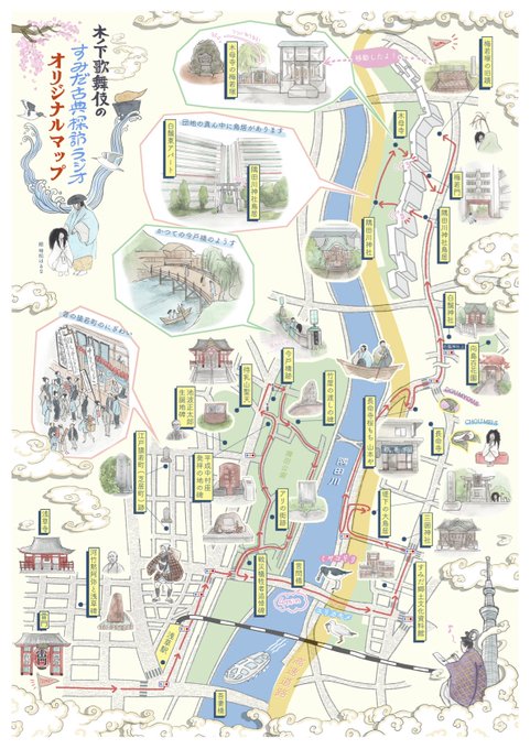 #浅草寺 から #鐘ヶ淵 まで約2時間のコースを、オリジナルマップを片手にお散歩できるプログラム🚶♀️🚶♀️