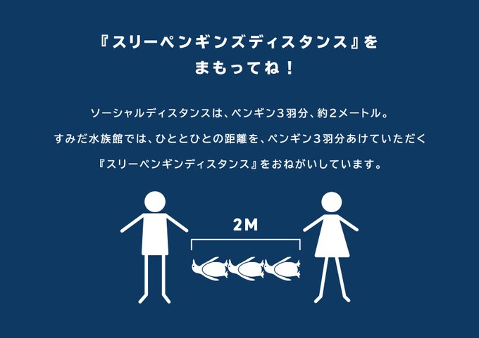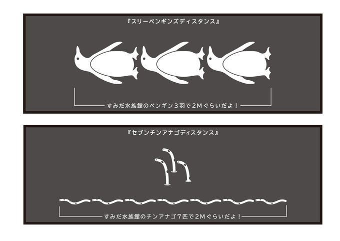 すみだ水族館は、当館で暮らすいきものに親しみを持っていただきながら、館内での「三密回避」と「衛生管理」対策にご協力いただく取り組み「スリーペンギンズディスタンス」を営業再開日の6月15日(月)より実施します。