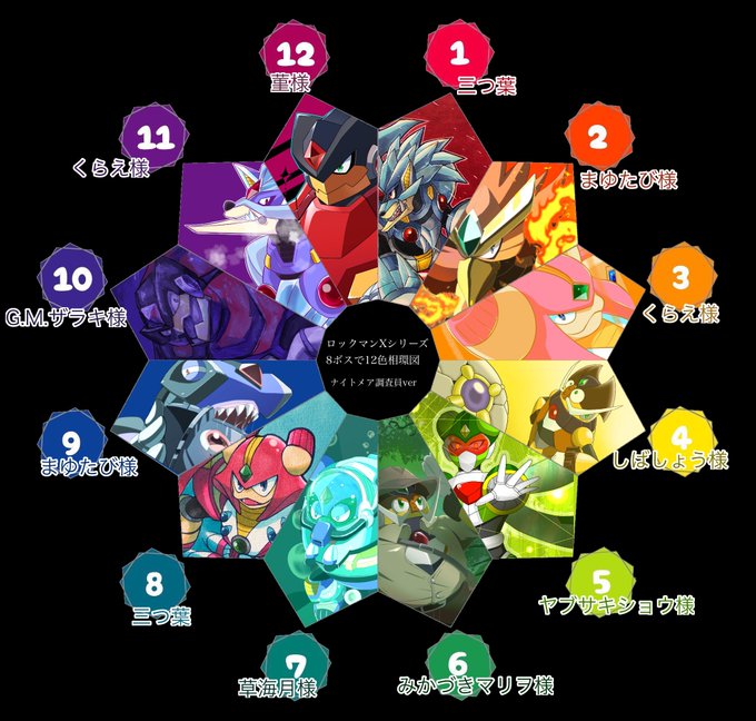 #ロックマンXシリーズ8ボスで12色相環