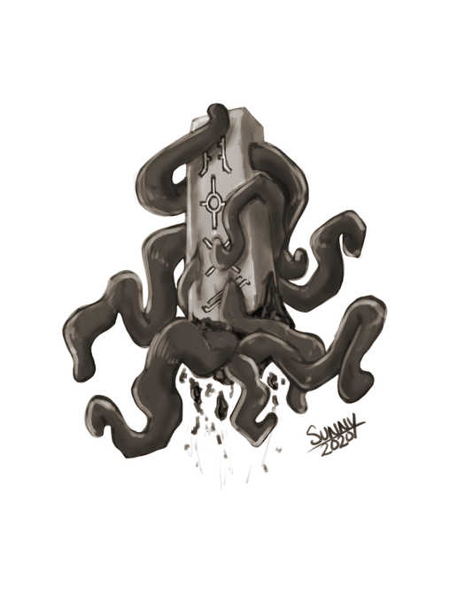 Did some experimenting in CSP again today. A friend asked me to show an example of my drawings of monsters, so he said to draw an obelisk with tentacles. Was supposed to be just a sketch, but I kinda went ham on it 😅