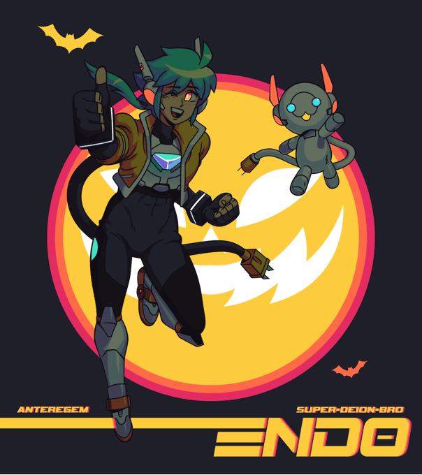 I just had to return the favor, haha! Here's my fan art of @anteregem's awesome OC, ENDO! (Also made a fun little Halloween alt lol) Hope you enjoy!⚡️