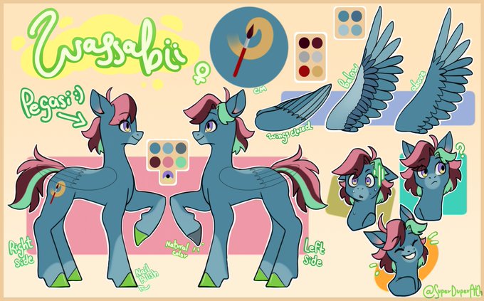I updated (again) my reference sheet, same pegasi but with short hair, better wings and painted hooves💚