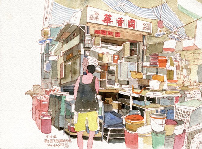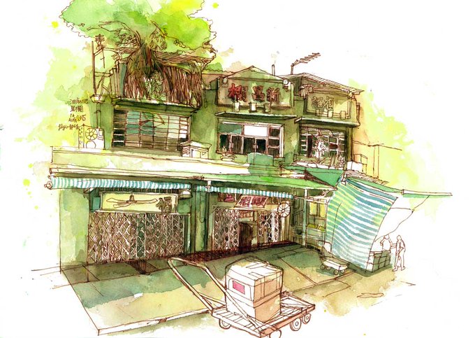Illustrator Wingshan Wong (aka Flyingpig) creates hand-drawn watercolors with community stories.