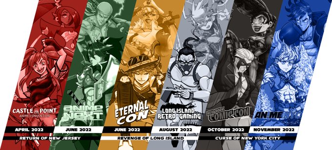 It's not 100% finished since I need to add artist credits but here's what the con lineup for next year will look like. Since I skipped 2021 I'm associating two characters with each con this time around.