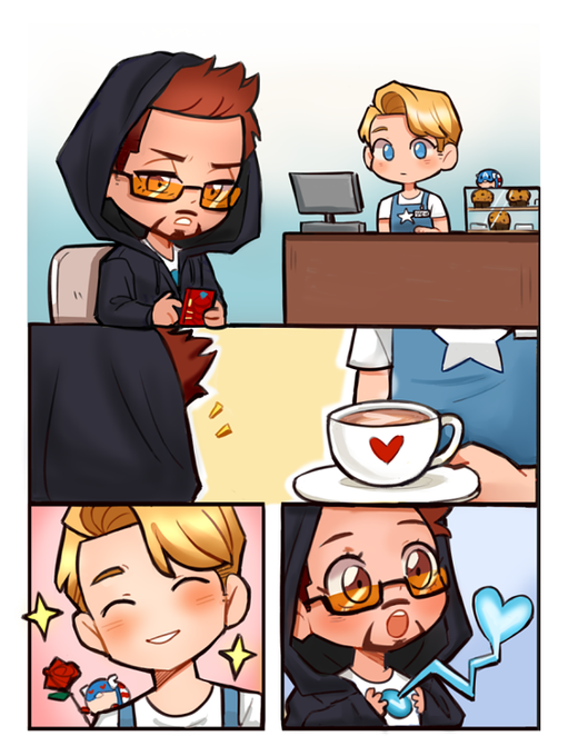 For the Wonderful @athletiger for the kind Kofi Donation! Stony AU where Steve works as a Barista part-time and gifts Tony the cutest guy he has ever seen, free Coffee☕️