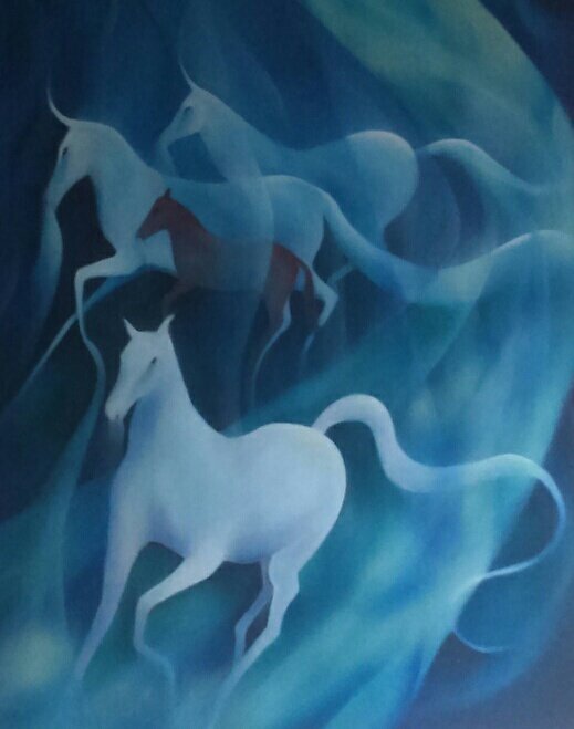 detail of large oil painting Path of Kanthaka #Folklore #surrealism #fineart for sale #Saatchi Art