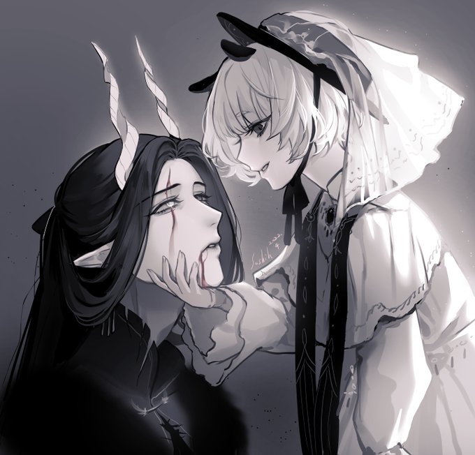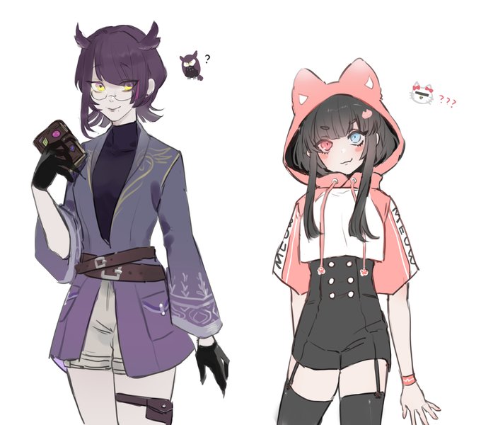 黑丟之前畫一個禮拜畫到快花轟的原兇就是這張 我很懷疑我還能不能再次畫出品質一樣的圖了🥲 這邊是參加OC互畫活動的成果 左邊是自己的孩子 右邊是依文字提示畫出來的別人家的孩紙