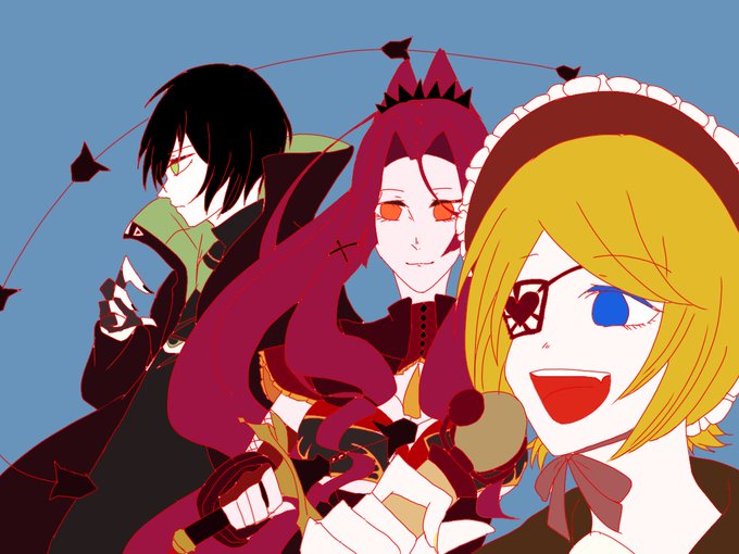 ベタやった時ちょっとレトロになって個人的にかあいいなあとか思ってたから線画赤のままにしたど、あと癖で零夜くんをオリジナルカラーで塗ってしまった事に割と遅い段階で気づいた