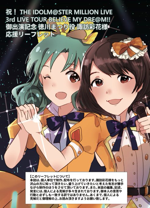 コミケ90、1日目西ホール m-29b Rainbow Shots!にて、ミリオン3rdで配布した「徳川まつり役諏訪彩花様応援リーフレット」を無料配布します