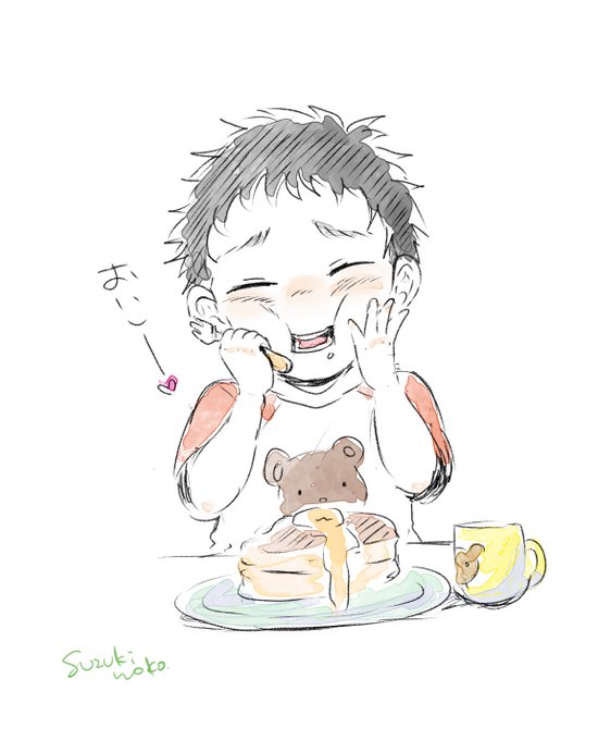 これはふりゃさんの作ったホットケーキがおいしくてほっぺ落ちないように押さえてるショタざみ