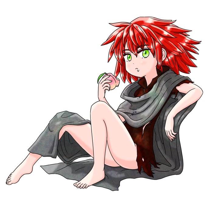 桃をたべるクロフェちゃんをかきました