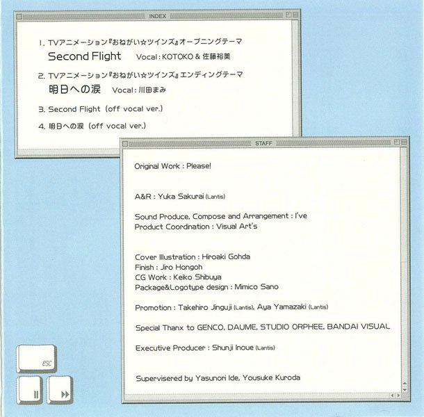 KOTOKO, Sato Hiromi , Kawada Mami - Onegai☆Twins - Single - Opening & Ending - Second Flight /明日への涙 (Asu e no Namida) (Lantis / King Records)