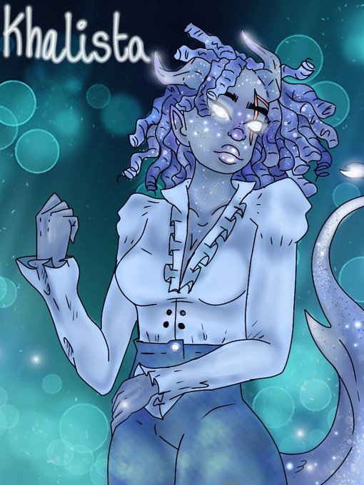 I made a drawing of my shiny tiefling Khalista 💕 (But WHY it's so hard to draw her ?? Am crying )