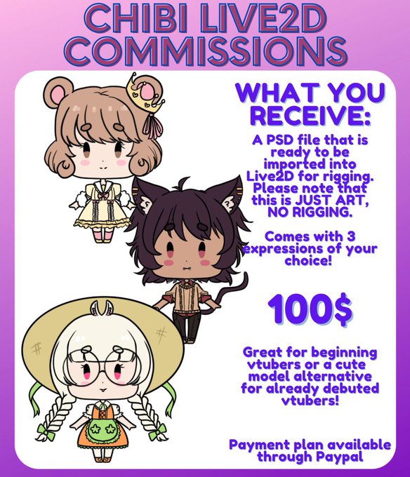 @BlancardSharpe Hello! I currently have Live2D commissions open! I also have a payment plan available 🥰🍉 you can grab a slot here if you’re interested! https://t.co/No6NSI1SU7