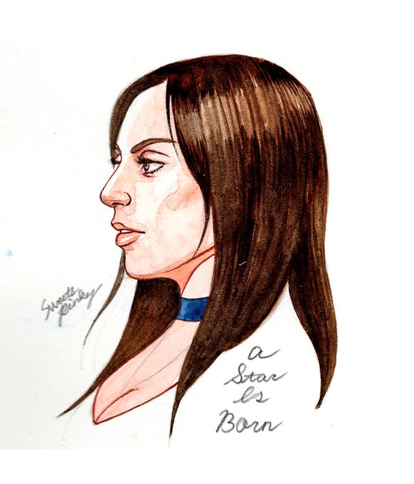 #AStarIsBorn #LadyGaga #Brunette #fanart #watercolor