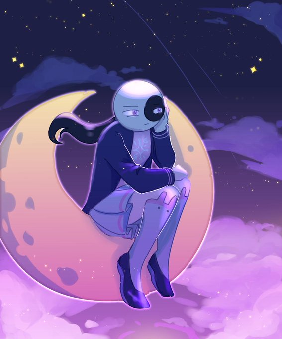 A shy moon who hides their face with a bucket, Her name's Purnama :^) 🌙✨