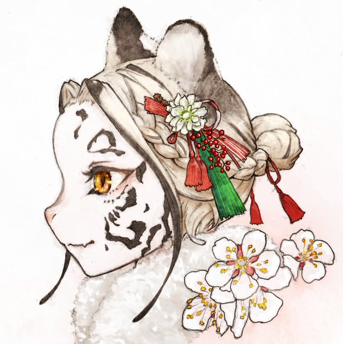 最近描けてないけど、年始に描いたこの子、すごく気に入ってる 耳とかフワフワに描けた(当社比)