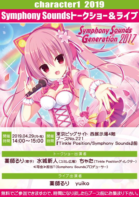 2019年4月29日(月)に開催されるcharacter1のブースNo.221「Tinkle Position / Symphony Sounds」にて、新アルバム『Symphony Sounds Generation 2017』を先行発売!