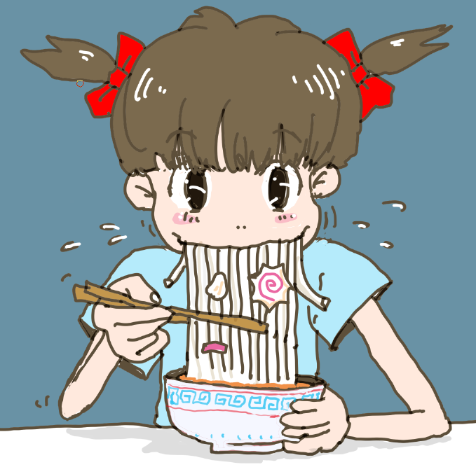 『ステーキ肉を咥える少女』