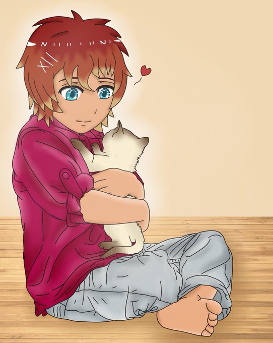 In Sims 4, I recently added a Persian kitten, named Yorisou, to Otoya and Syo's family and she bonded really well with Hiroki when they first got her, so I decided to draw these two together ^^