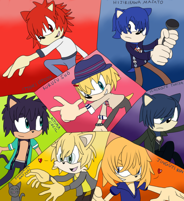 Something quite random! I got into an anime about three years ago but never finished watching it called Uta no Prince Sama and recently I managed to finish the series and randomly decided to draw the main boy characters as Mobians and here's the result x3