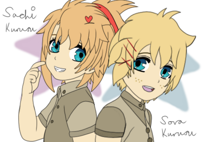 Anddd one more for now x3 this time a Syo and Kaoru redraw of Syo's fankid twins, Sora and Sachi Kurusu :3