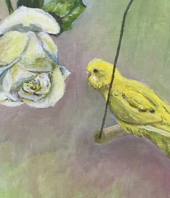 西風が吹きトルコキキョウが揺れる。黄色い小鳥はご機嫌そうに歌っています。