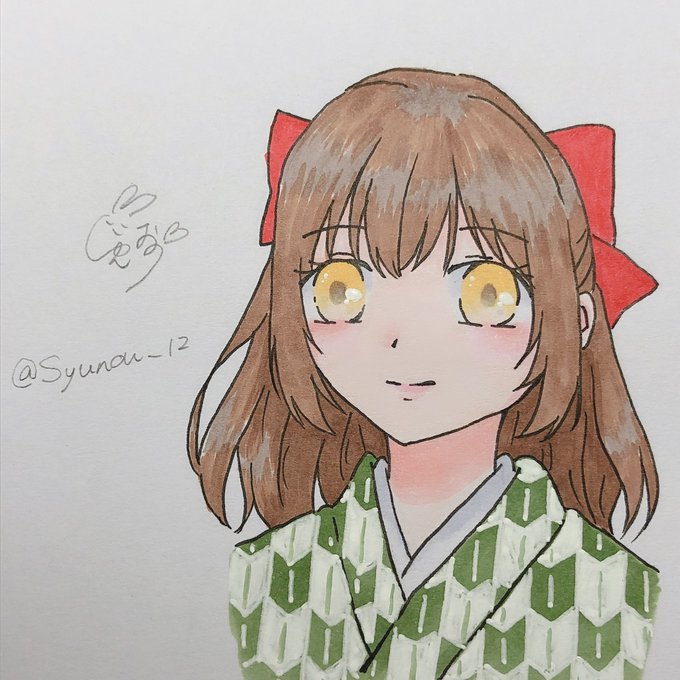 いつも明るいあの子🎀 おめめちょっと失敗した 着物の色いいの無かったから🌱の色で✋