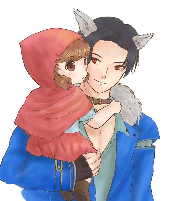 前に描いた 狼ルシファーと幼女MC 色塗ってみた。 狼ルシカード欲しいなー #obeymefanart