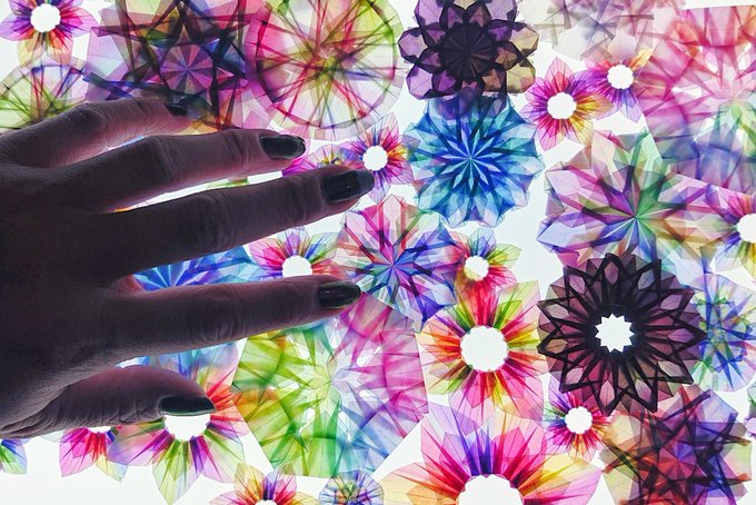 折り紙を透かせて遊んでいる人です。