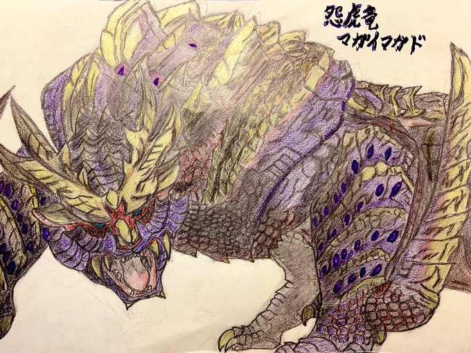 マガイマガドの体が大きくて、名前書くスペースが小さくなってしまいましたー。でも、その分全体的に重さは表現できたかな?