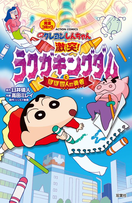近日公開の映画に先がけ「映画クレヨンしんちゃん 激突! ラクガキングダムとほぼ四人の勇者」漫画版発売中‼️