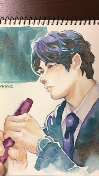 先月KA-KU大阪さんでブレンドしてもらった瀬名イメージインク中心に瀬名を描きました〜!山月記もとっても綺麗な色でアガりました! インク:🔴KA-KU大阪「オリジナルインク」 🔵ペント「コトバノイロ 山月記」 ガラスペン:🌌銀河鉄道の夜
