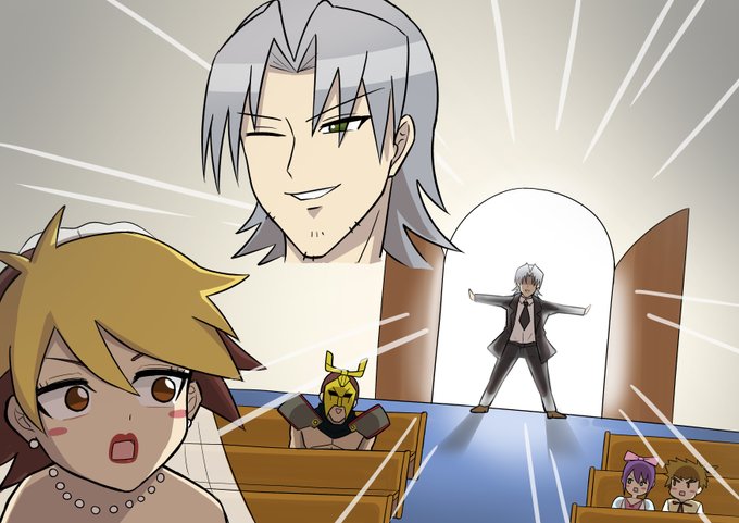 フォロワーさんの呟きを見て描いてみたくなりました👓🌠 ジューンブライドにちなんで某学園ハンサムの某アウトロー教師パロでロイリュウ💒 ???「その結婚チョットマッターッ!マッテクーダサーイッ!」 「誰だッ!?」