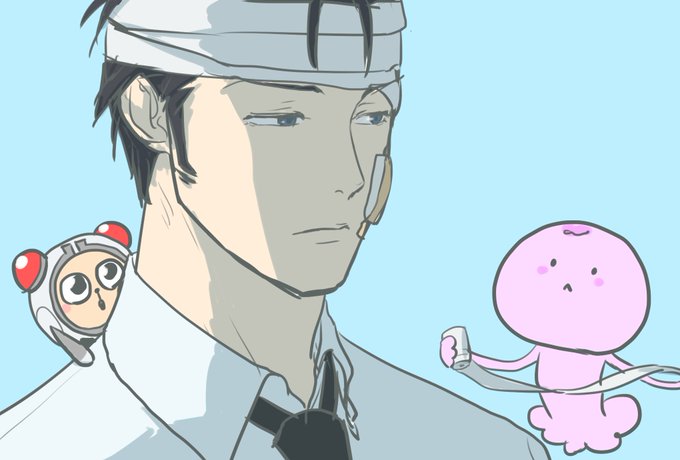 Yシャツに包帯ぐるぐる巻きの須郷さん